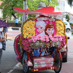 Enterprising rickshaw drivers in Malacca decorate their vehicles with contemporary themes. Not a ride I would take, but they were funny to see.